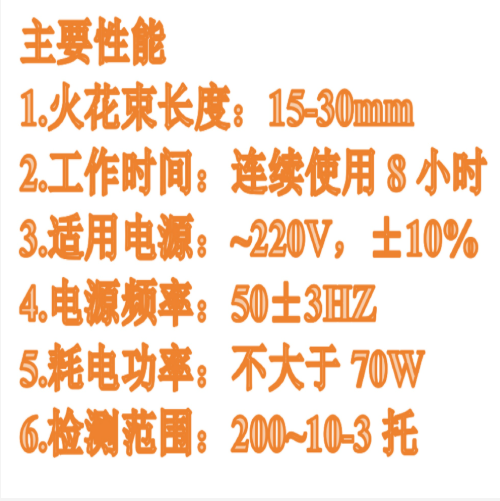 2.在測試玻璃器件時,須來回移動,勿使停留時間過五秒鐘以上,以免火花將玻璃擊穿。